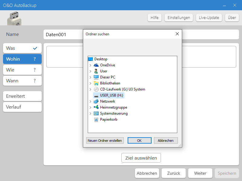 Die Benutzungsoberfläche ist sehr einfach und intuitiv gehalten und ermöglicht mit nur wenigen Klicks die Einrichtung einer Sicherung und somit den verlässlichen Schutz der eigenen Daten vor einem Verlust durch versehentliches Löschen oder einen Virenangriff.