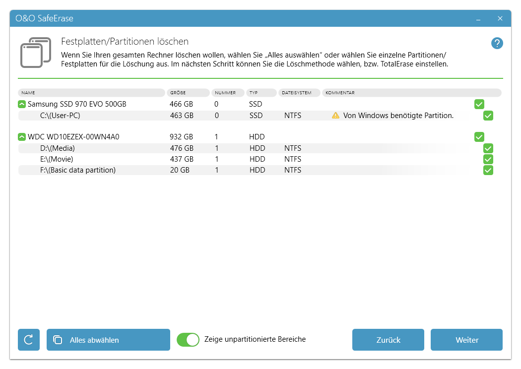 Dateien, Verzeichnisse, Laufwerke oder den gesamten PC löschen – mit O&O SafeErase kein Problem! Auch Ihre Internetspuren können per Knopfdruck schnell und sicher gelöscht werden. Jede Nutzerin und jeder Nutzer eines Windows-PCs kommt irgendwann mal an den Punkt, an dem eine Festplatte oder SSDs gelöscht oder bestimmte Dokumente sicher vernichten werden sollen.