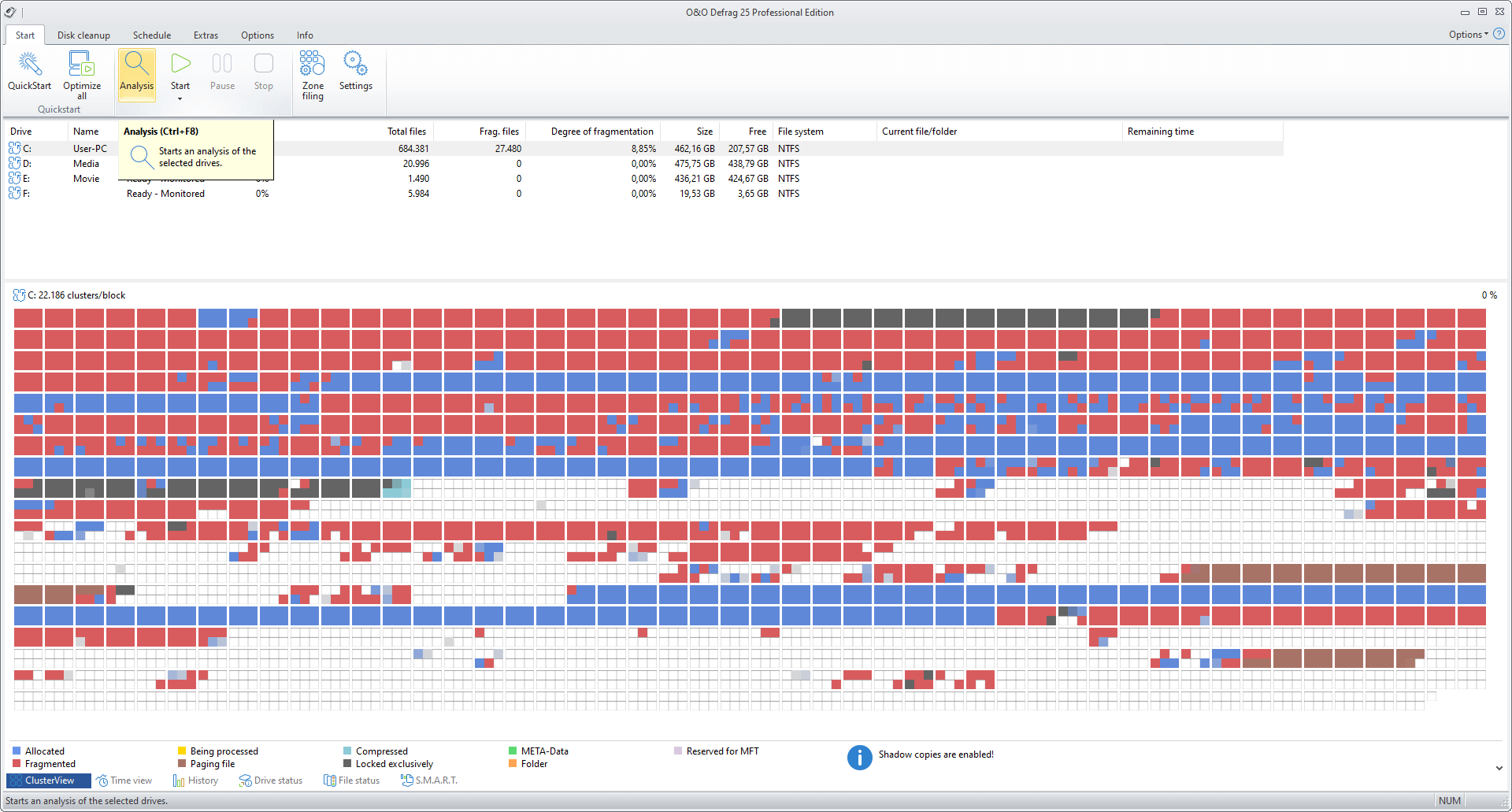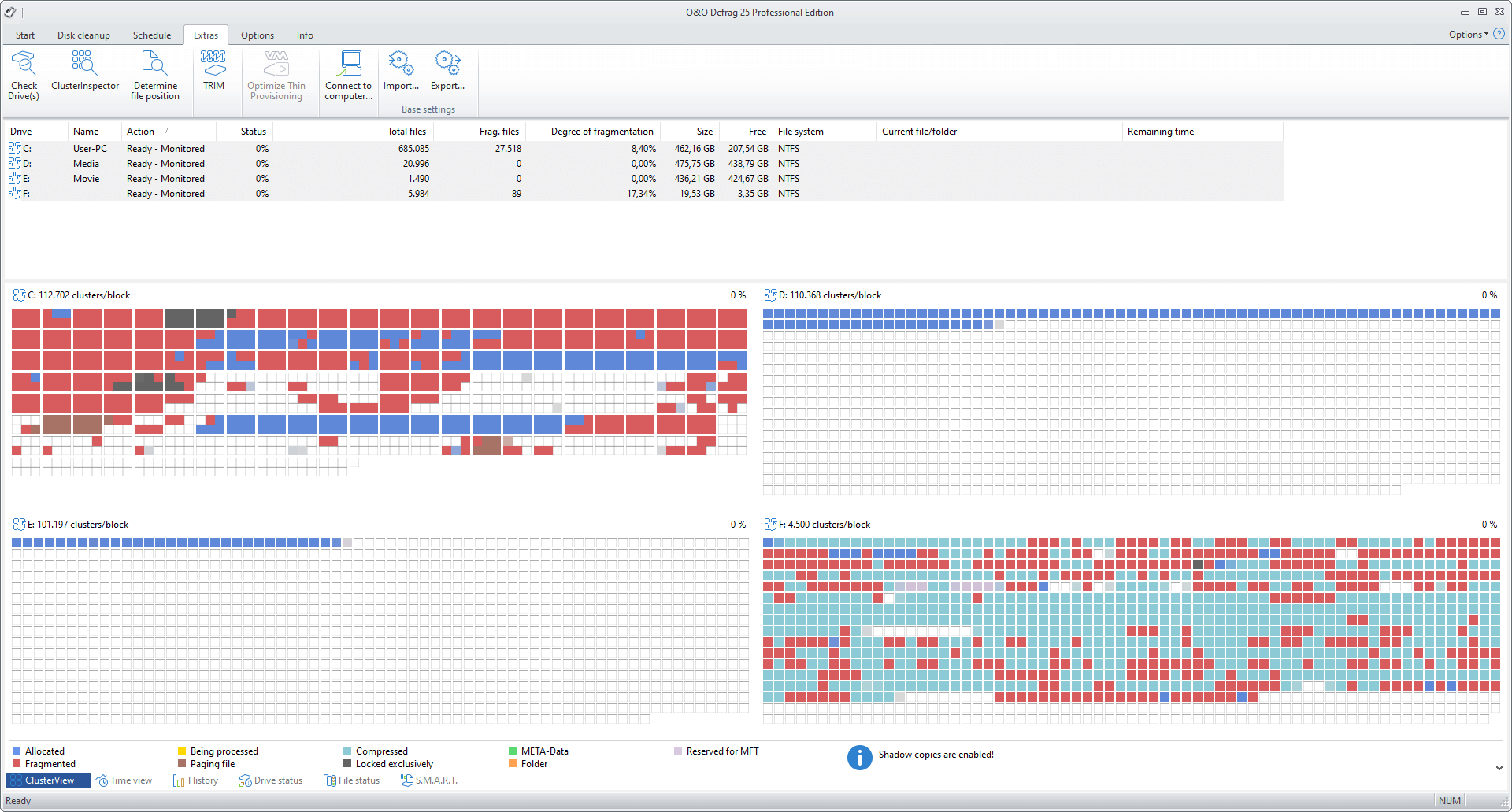 - ClusterView with SSDs: In order to represent the degree of fragmentation of an SSD, the ClusterView now maps the logical structure of an SSD so that, accordingly, 6 blocks are combined into one.