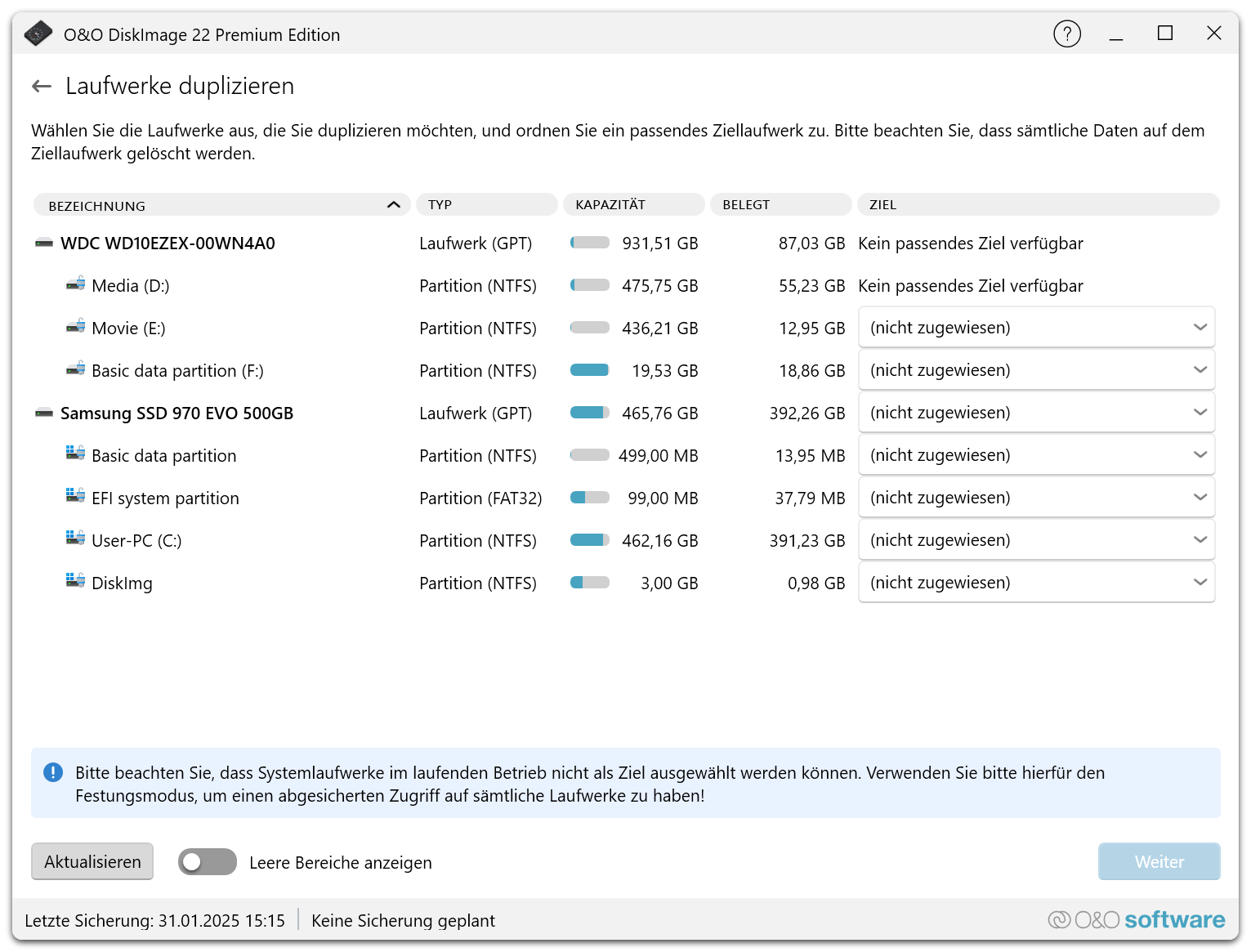 Con un solo clic, è possibile avviare il backup dell’intero computer. Il backup con un solo clic è particolarmente adatto se O&O DiskImage viene utilizzato per la prima volta o se non è ancora stato creato un backup del computer.